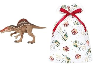 マテル ジュラシックワールド(JURASSIC WORLD) かみつき! スピノサウルス 【全長:55㎝】【4歳~】 HCG54 + インディゴ クリスマス ラッピング袋 グリーティングバッグ3L ギフト ホワイト XG616