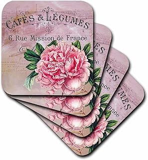 (set-of-4-Ceramic) - 3dRose cst_123376_3 French Vintage Pink Peony Botanical Ceramic Tile Coasters, Set of 4