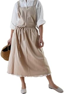 Anyasun エプロン リネン レディース メンズ シンプル ナチュラル 北欧 無地 前掛け ロング丈 カフェレストラン ワークエプロン 男女兼用 親子エプロン (ベージュ)