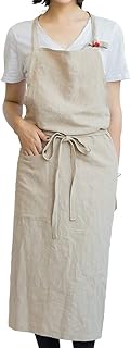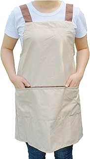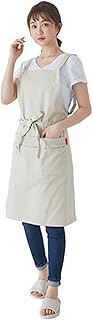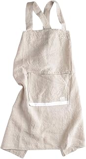 エプロン 100%リンネル おしゃれ 人気 おおきいサイズ 男女兼用 ポケット付き おしりが隠れる 保育士 家庭用 カフェ用 花屋 料理店用 (ベージュ, 1本セット)