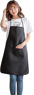 Will Well 男女兼用 キッチン用 胸当て エプロン 耐水 耐油 汚れ防止 ブラック シェフ クッキング キッチン エプロン ポケット付き (1点)