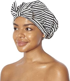 Kitsch 女性用高級シャワーキャップ - 防水、再利用可能なシャワーキャップ(ブラックとホワイトのストライプ)