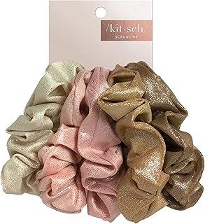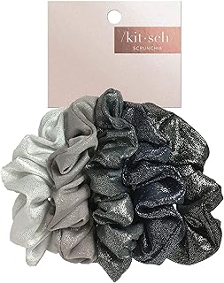 Kitsch 髪の毛用メタリック・シュシュ、女性と女の子向けヘアシュシュ、ファッションシュシュセット、5 個入りパック(グレイ/ブラック)