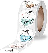 Jetjoy円形ステッカー ラウンド シール サンキュー thank you シール 可愛い猫 装飾用 ラベルDIY 手作り 自己接着 結婚式 誕生日 パーティー ラッピング ラベル 葉書き 手紙 封筒 ラッピング 500枚 直径25mm