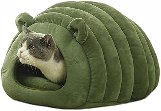 DDBAO ペットベッド 猫ベッド 猫ハウス ドーム型 クッション 洗える ふわふわ 小型犬 滑り止め 可愛い シープ ペット用品 軽量 寒さ対策 保温防寒 快適 柔らかい (50x40x38cm,グリーン)