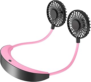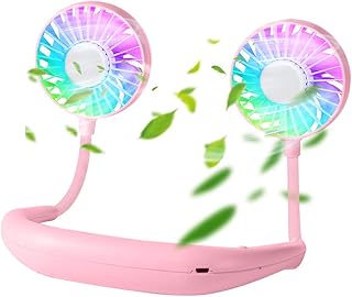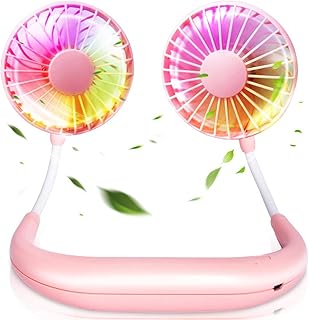QLM 首掛け扇風機 【在庫一掃セール!999円!】 携帯扇風機 首かけ扇風機 ハンズフリー 小型 卓上・手持ち可能 USB充電式 7枚羽根 360度自由調整 超強風 3段階風量調節 LEDライト機能 7色切り替える 超静音 軽量 大容量2000mAh 12時間連続使用 折りたたみ式 ポータブル扇風機 両手解放 ダブルファン アウトドア用 ミニ 暑さ対策 旅行 自宅 寝室 車内 オフィス 台所 登山りなど適用 (ピンク)