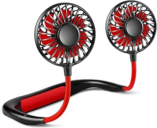 Soarmax 首掛け 扇風機 携帯扇風機 ハンズフリー扇風機 首掛け WFan(ダブルファン) 超大容量 2000mA 3段階風力調節 360度自由調整 長時間連続使用 小型 手持ち USB扇風機 充電式 静音運転 お手入れ簡単 熱中症対策 オフィス アウトドア用 スポーツ観戦 (レッド)