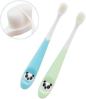 子供用 歯ブラシ 歯ブラシ 超先細毛 (小学生用)ハブラシ 虫歯予防 歯ブラシ コンパクトヘッドハブラシ パンダ柄 2本パック(青と緑)