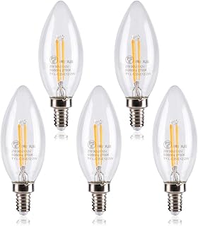 Tengyuan シャンデリア電球 LED クリア電球 25W形相当 E12口金 2W 蝋燭型 フィラメント LED電球 電球色 2700k 250lm C35 クリアタイプ シャンデリア形 (E12 5個入り)