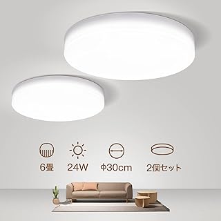 【2個セット】SUMKUMY LEDシーリングライト ~6畳 24W 直径31.5cm 薄型 長寿命 省エネ ちらつきなし 簡単取付 照明器具 洋室 和室 リビング ダイニング 居間 玄関 門灯 廊下 和室 台所 洗面所 トイレ 昼光色