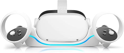 Esimen Oculus Quest 2 充電ベース, VRウォールマウント充電器、高速充電ステーション、Oculus Quest 2のモニタースタンド, Oculus Quest 2 充電ドック, 呼吸灯付きケーブル(白)