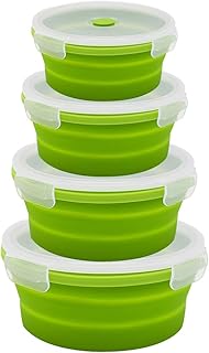 URBEST 折りたたみ式ボウル シリコンフードストレージコンテナ キャンプ用 4個セット ラウンドシリコンランチコンテナ 電子レンジと冷凍庫対応 グリーン 4個