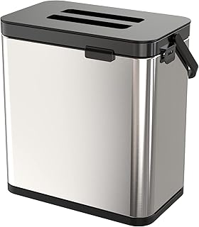 Amazon.com で、Umimile ゴミ箱 ふた付き 8L 生ゴミ 防臭 蓋付きゴミ箱 キッチンゴミ箱 ステンレス製 キッチン収納 の役立つカスタマーレビューとレビュー評価をご覧ください。ユーザーの皆様からの正直で公平な製品レビューをお読みください。 【ゴミ臭いが漏れにくい】蓋付きゴミ箱はゴミ袋 (1ロール付属)を押さえて止めるハンカーが付いており、虫やハエなどを防ぎ、ゴミ臭いの漏れを避け、内側が汚れにくくなり、においもありません。 夏場でも臭わず快適に過ごせます。 【省スペース・腰をかがめない掛けゴミ箱】キッチンゴミ箱は調理台のスペースを取らず台所の扉に引っ掛けたり、壁に掛けたり設置できます。 腰をかがめてゴミを捨てる必要がなく、調理中に出る野菜の切れ端などを包丁で目の前のゴミ箱に押し出してを捨て、生ゴミが床にこぼれなくて済み、子供やペットがゴミ箱を引っくり返すことを避けることができます。 【ステンレス製でお手入れ簡単】ダストボックスはサビにくいステンレス製、プラスチック製より割れが生じにくく、汚れてもタオルでサッと拭くだけで取れます。