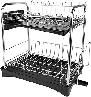 [leimish]水切りラック 2段水切りかご ステンレス製 バスケット錆びない 水が自動で流れる 乾燥 食器水切り 皿置き 箸立て 大容量 キッチン収納(ブラック)