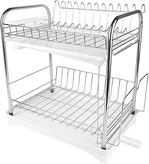 水切りラック 2段水切りかご ステンレス製 箸立て まな板受け 水受けトレー 水切りバスケット 食器 キッチン収納 (ホワイト)