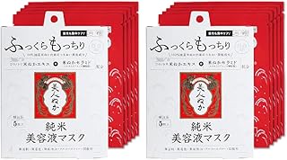 フェイスマスク 純米美容液マスク 5枚入×2箱 シートマスク パック 2個セット 日本製 フェイスパック ふっくら もっちり 毛穴 保湿 うるおい ハリ キメ 化粧品 スキンケア 米ぬか セラミド 保湿成分 セット コスメ 厚手シート 目元ケア 濃密 個包装 美人ぬか 純米