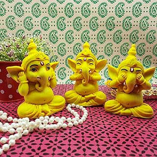 Ascension ® Set of 3 Ochre Ganesha Idol Beautiful Lord Ganesh Idol Statue Murti for Home Décor Office Pooja Room Car dashborad Diwali Gift Festive Idol